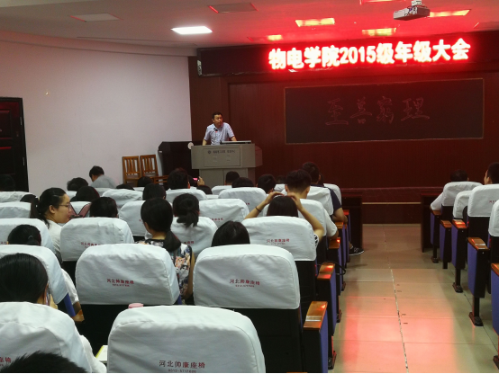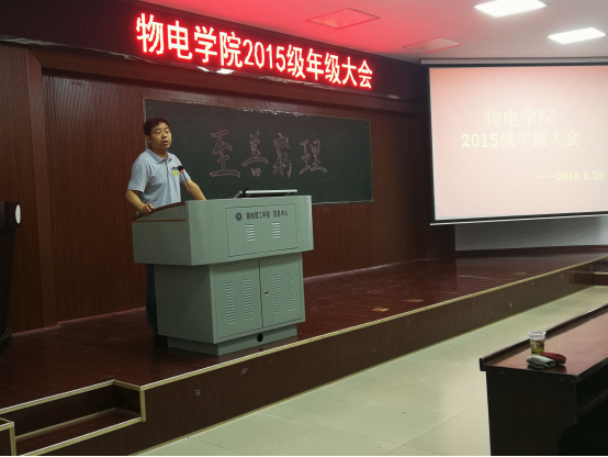 6月26日上午,物电学院在六栋学术报告厅举行了15级全体学生大会,出席的嘉宾有物电学院院长李宏民,党总支书记罗文华,党总支副书记孙亚辉,就业专干龙颜,15级年级辅导员何小娅。