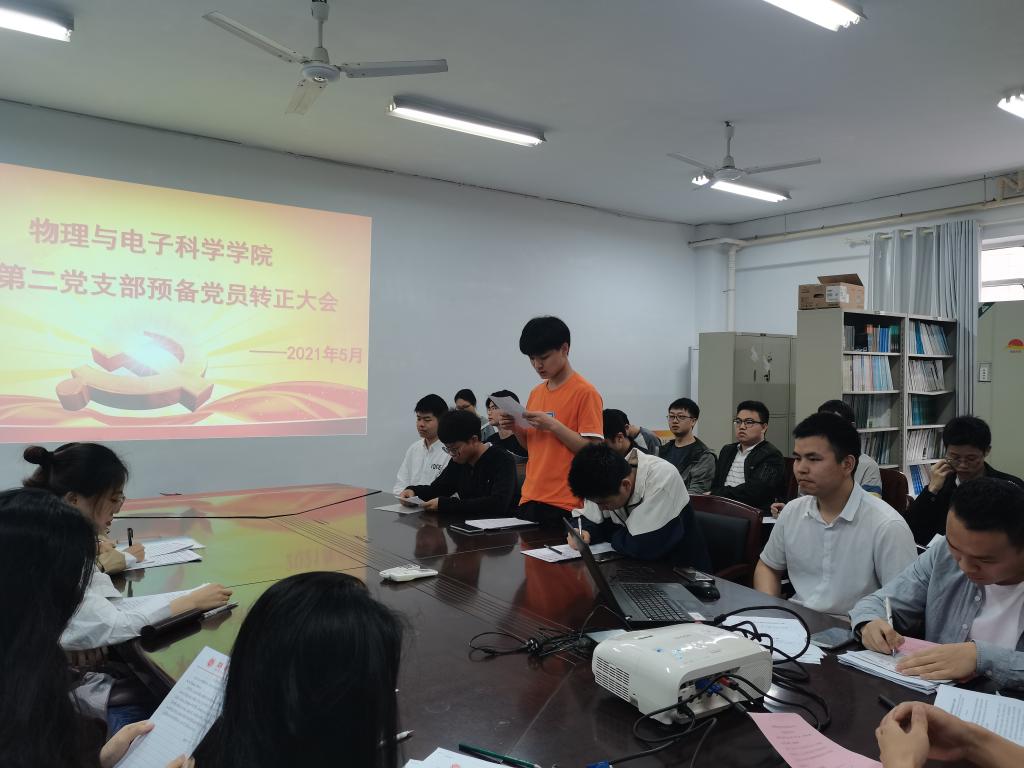 5月25日中午,物电学院学生第二党支部在6206会议室召开预备党员转正大会。物电学院学生第二支部书记严胡伟出席并主持会议,学生第二党支部全体党员与会。