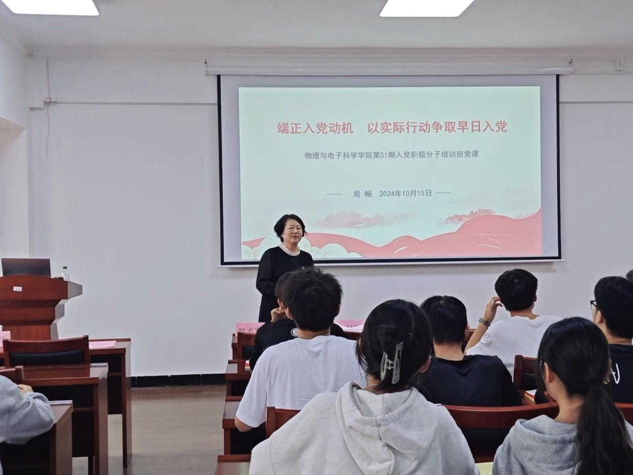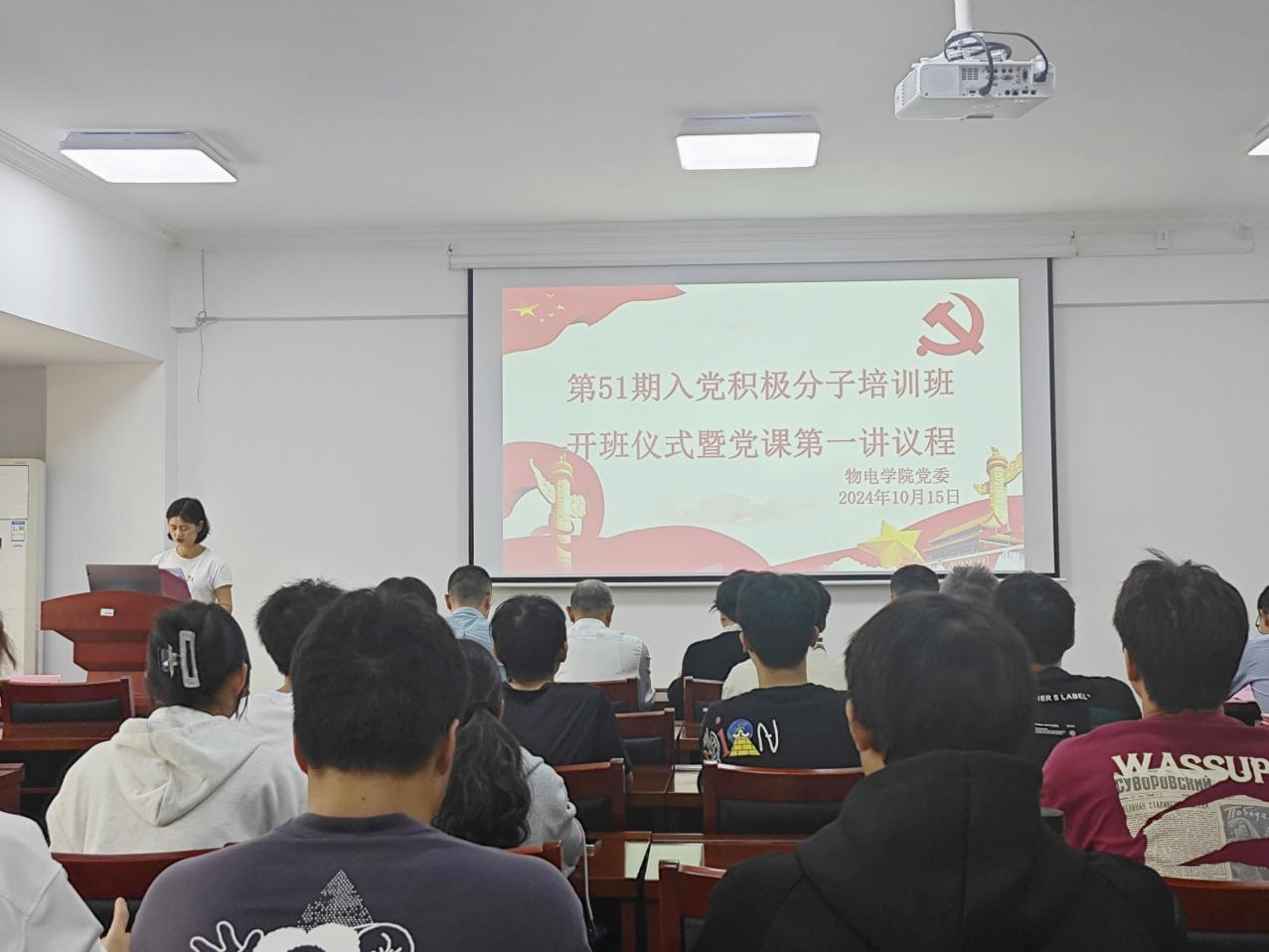 2024年10月15日下午,物电学院党委在6211会议室举行第51期入党积极分子培训班开班仪式暨党课第一讲。学院党委委员、支部书记、第51期入党积极分子参加,何小娅主持。