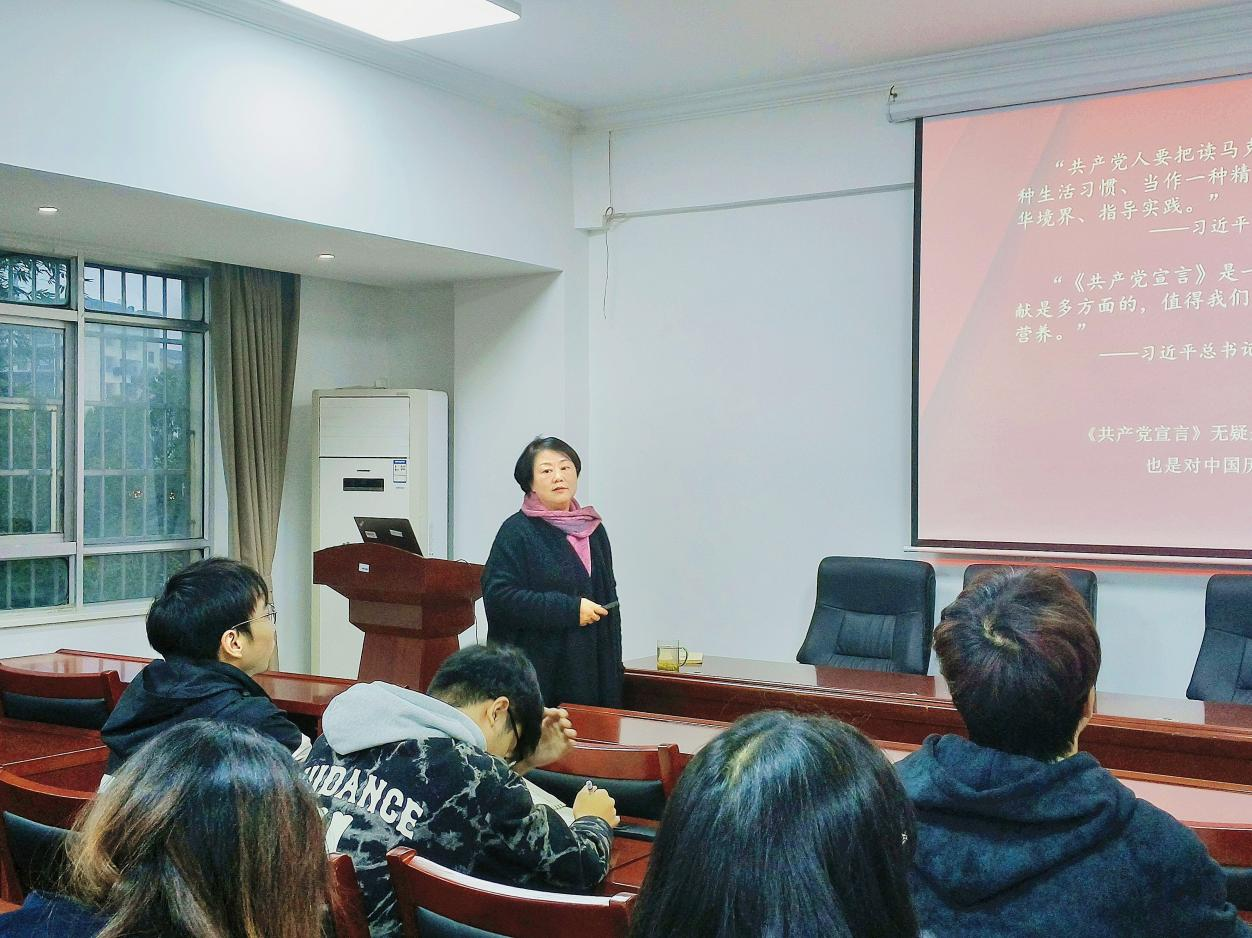 11月19日下午,物电学院党委书记周畅为第51期入党积极分子讲授《共产党宣言》。