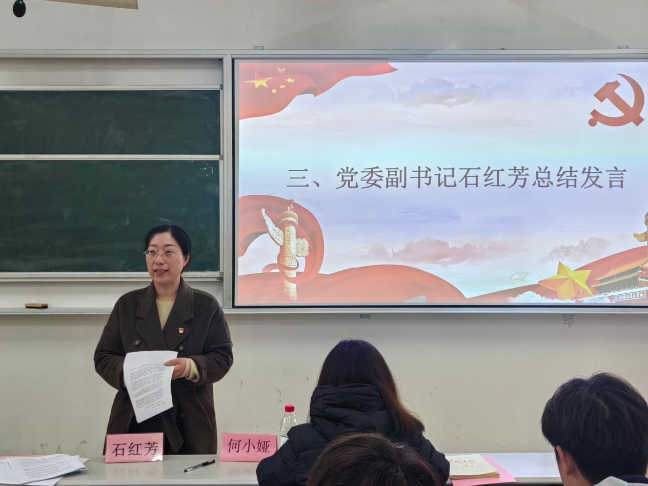 石红芳充分肯定全体答辩学子的亮眼表现,寄语大家常怀求知向学之心,深耕党的理论知识,筑牢信仰根基、坚定理想航向;立足专业勤学精进,锤炼过硬本领、全面提升综合素养;永葆热忱服务初心,主动躬身实践、勇担青年使命;严守纪律规矩底线,时刻自省自励,以高标准严要求树立先进榜样、彰显青春风貌。