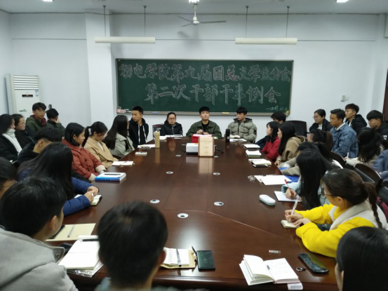 为了加强团学干部与干事之间的团结合作精神,协调好各部门工作。2018年12月6号中午十二点,物电学院在6205召开了第九届团总支学生分会第二次干部干事例会,会议由团总支副书记黄瑞主持,团学的主席团和所有部长、干事参加了本次会议。