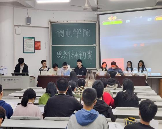 11月2日,我院为了激励同学们奋力追寻梦想,理智面对人生道路上的坎坷,物电学院在6t1和6t2教室开展“思辨杯”初赛,主持人分别是吴斯涛与唐佳宁,韩刚、杨冉、贺文洁、伍文洁等人分组担任评委,每组比赛正辩和反辩各四人,以及数余名学生前来观赛。