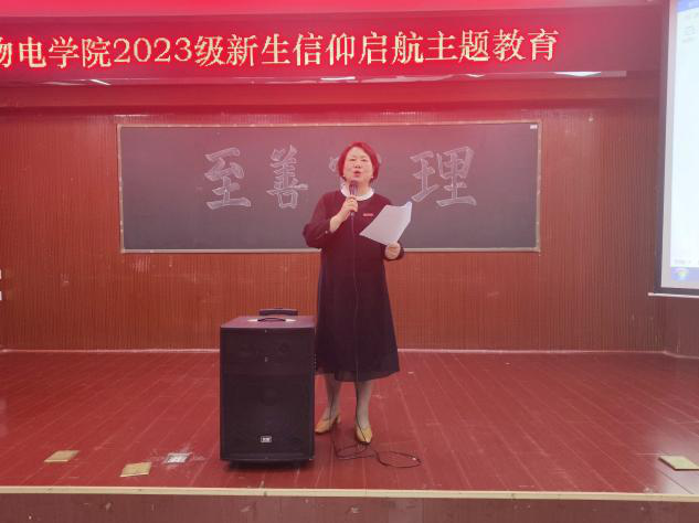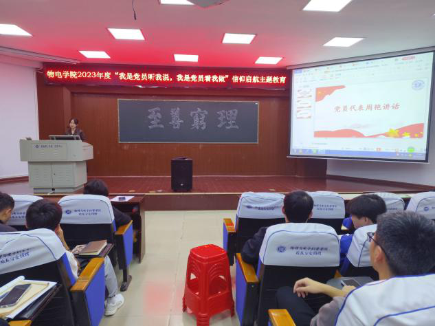 为强化2023级新生思想政治教育,帮助他们坚定理想信念,厚植爱国爱党情怀。10月12日晚,物电学院在6栋学术报告厅开展2023级新生信仰启航主题教育活动,物电学院党委书记周畅主讲,全体2023级本科和研究生新生参加。