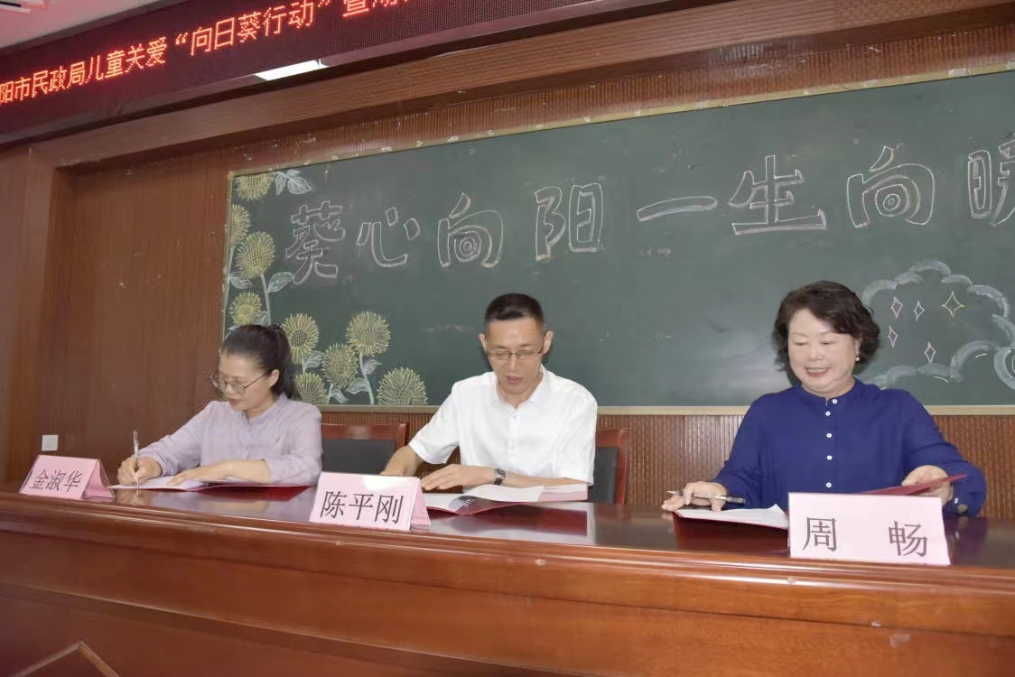 启动仪式上,岳阳市民政局、WilliamHill中文官方网站物电学院、岳阳市众心社会工作服务中心签署了农村留守儿童和困境儿童“向日葵行动”合作协议。