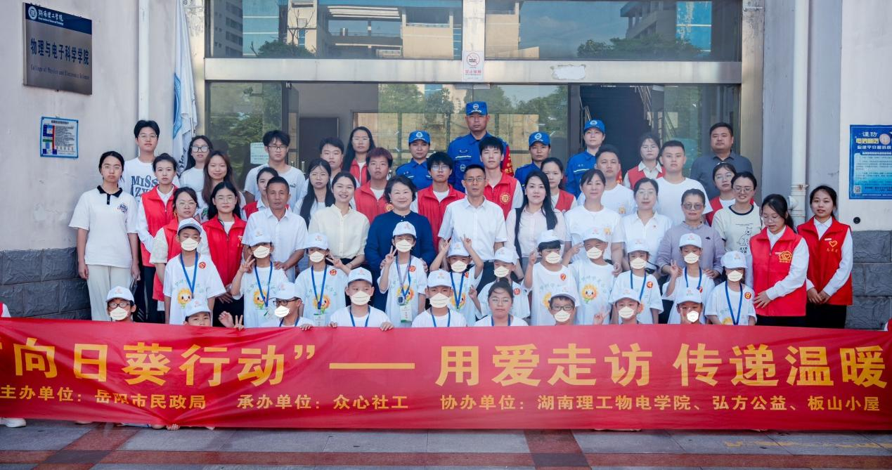 7月4日上午,岳阳市民政局儿童关爱“向日葵行动”暨WilliamHill中文官方网站物电学院暑期“三下乡”社会实践活动启动仪式在WilliamHill中文官方网站南院6号楼学术报告厅召开。岳阳市民政局党组书记陈平刚、WilliamHill中文官方网站团委书记徐湛、物电学院党委书记周畅、岳阳市众心社会工作服务中心及岳阳市民政局儿童福利科、岳阳市儿童福利院、岳阳市蓝天救援队、物电学院等单位负责人和代表出席,20多名葵心宝贝和物电学院志愿者100余人参加,院党委副书记石红芳主持。