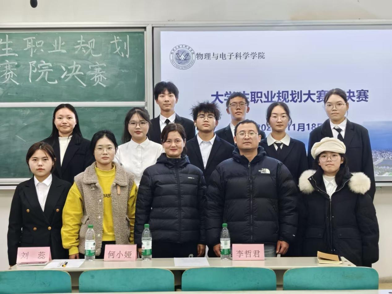 11月18日,物理与电子科学学院2025年大学生职业规划大赛决赛在6109教室顺利举行。本次比赛由学工办主任何小娅老师、就业专干李哲君老师以及学院团学分会执行主席刘蕊担任评委,20名选手来自各年级各专业。