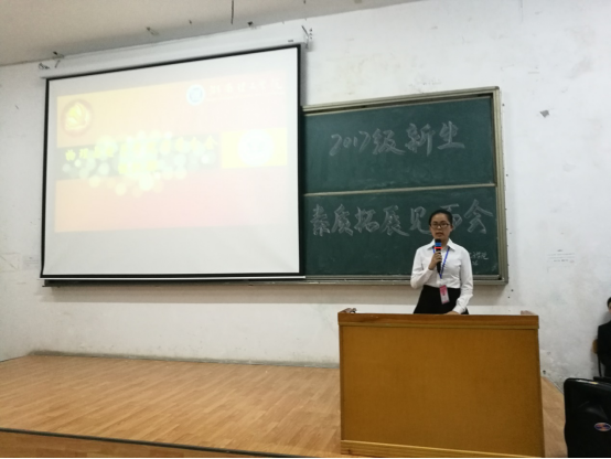 会议共有5项议程。首先由张恒道老师向17级“军训助管”颁发聘书,对他们的付出表示肯定。第二项议程由学生会主席李泽鹏介绍团学的基本情况。李泽鹏学长通过自己从干事到主席的感受,向17新同学展现了一个和谐友爱的团学大家庭,并期待新鲜血液的加入。第三项议程是各部门部长顺序上台,通过精美的PPT和生动的演讲清晰的展现了每个部门的主要工作与活动。