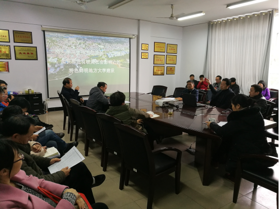 刘创教授本次宣讲的主题是:深入学习宣传贯彻党的十九大精神,加快推进有较高社会影响力的特色鲜明地方大学建设。他从近期热门影视《战狼2》热播导入,分析为何受追捧。回顾中国近代民族屈辱史和现阶段中国共产党领导中华民族创造的辉煌成就。中国共产党是中国各项事业的领导力量,党的十九大是在全面建成小康社会决胜阶段、中国特色社会主义进入新时代的关键时期召开的一次十分重要的大会,是一次不忘初心、牢记使命、高举旗帜、团结奋进的大会。党的十九大最根本的政治意义,就在于旗帜鲜明地宣示了我们党在新时代举什么旗、走什么路、以什么样的精神状态、担负什么样的历史使命、实现什么样的奋斗目标等关乎旗帜、方向、道路、使命的根本性问题;最根本的历史意义,就在于作出了中国特色社会主义进入了新时代这一重大政治论断,这是我国发展新的历史定位,清晰地指出了党和国家事业所处的时代坐标,为明确下一阶段的历史任务、坚持和发展中国特色社会主义指明了方向;最根本的理论意义,就在于将习近平新时代中国特色社会主义思想确立为党的指导思想,实现了马克思主义中国化的又一次历史性飞跃,这是大会的重大历史贡献和重大理论贡献;最根本的实践意义,就在于顺应我国发展的新要求和人民群众的新期待,深刻阐明了党和国家工作的行动纲领,清晰描绘了实现中华民族伟大复兴的战略步骤、大政方针和实践路径。