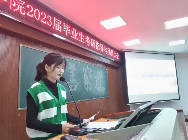 随后,18级优秀考研学生们依次上台做经验分享,他们讲述了自己的考研经历、学习方法,分享了精品网课、练习册等学习资料……这些“过来人”的宝贵经验给2023届毕业生同学们提供了许多可鉴之处。