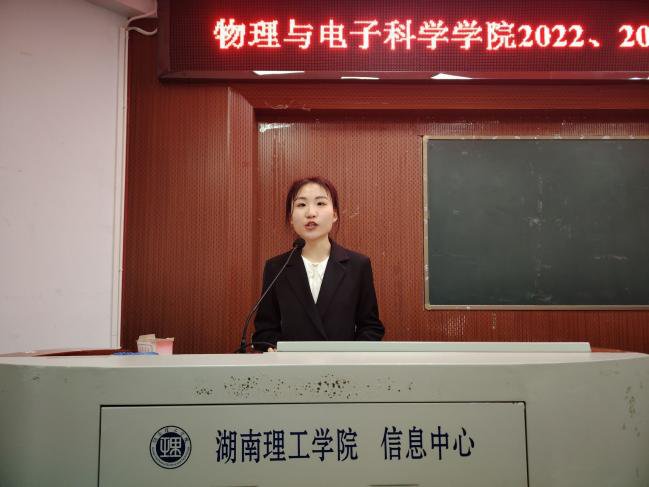 仪式在庄严的国歌中拉开序幕。副院长魏勇宣读《物理与电子科学学院院长奖学金评选细则》,院党委副书记李科敏宣读《物电学院关于表彰2022、2023年度院长奖学金获得者的决定》,授予物理学专业2020-2BS班李沁同学“2022年度个人院长奖学金”,授予物理学专业2020-1BS班杨诗怡、光电信息科学与工程专业2021-1BF班孔鑫两位同学“2023年度院长奖学金(个人)”,授予物理学专业2023-2BS班廖艳虹、张雅卉、王秋怡、方芳、李敏佳、侯心怡等六位同学“2023年度院长奖学金(团体)”荣誉称号,并分别授予奖金(个人)3000元和(团队)4000元,表彰他们在专业学习、勇于创新、敢于实践、关心集体、奉献社会等方面做出的突出贡献。