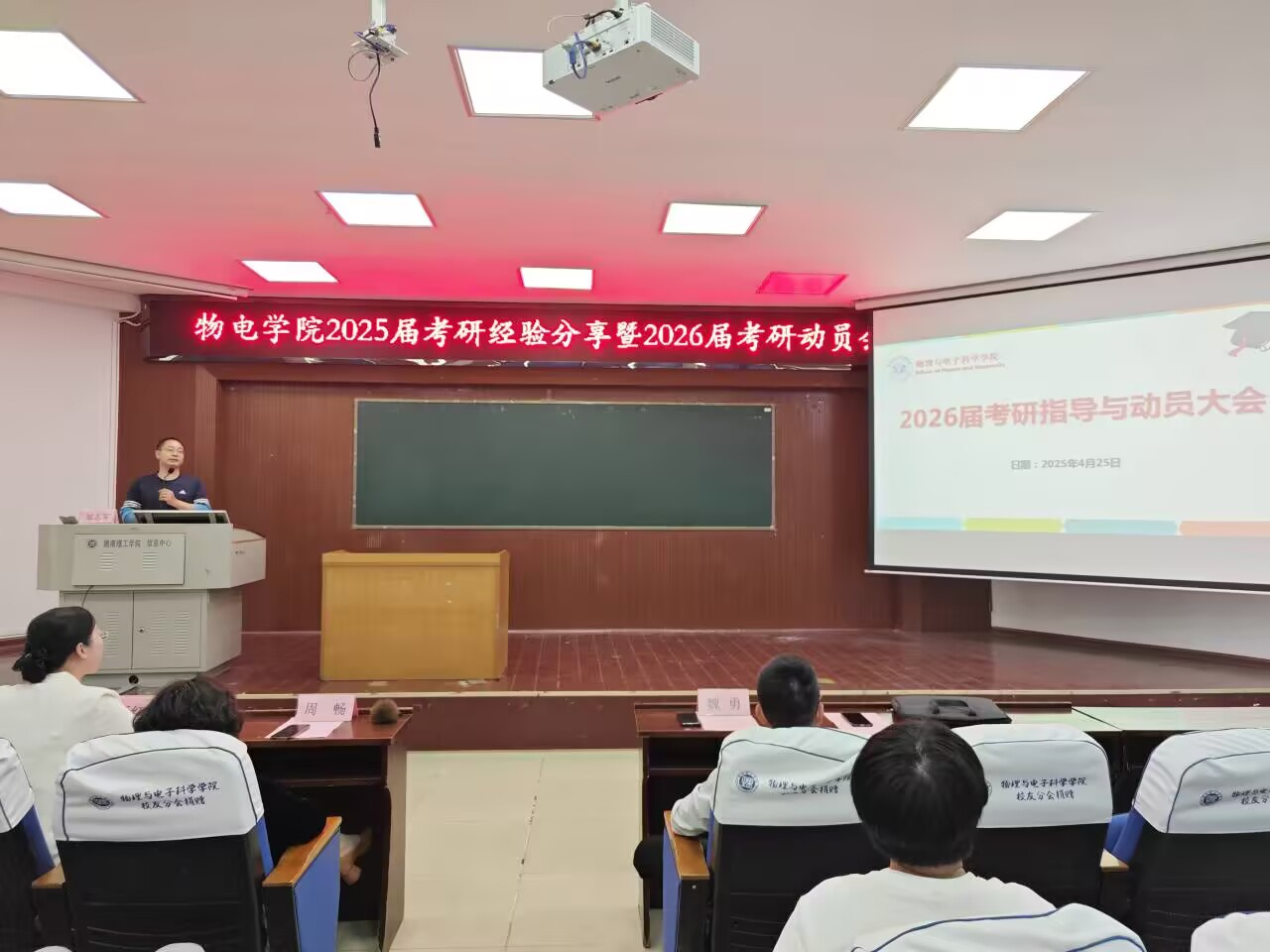 4月25日,学院召开2026届学生考研动员会,院党委副书记、主持工作副院长魏勇等领导、班主任出席,2022级电子类专业学生及其他年级有意向考研的学生100余人参加,何小娅主持。