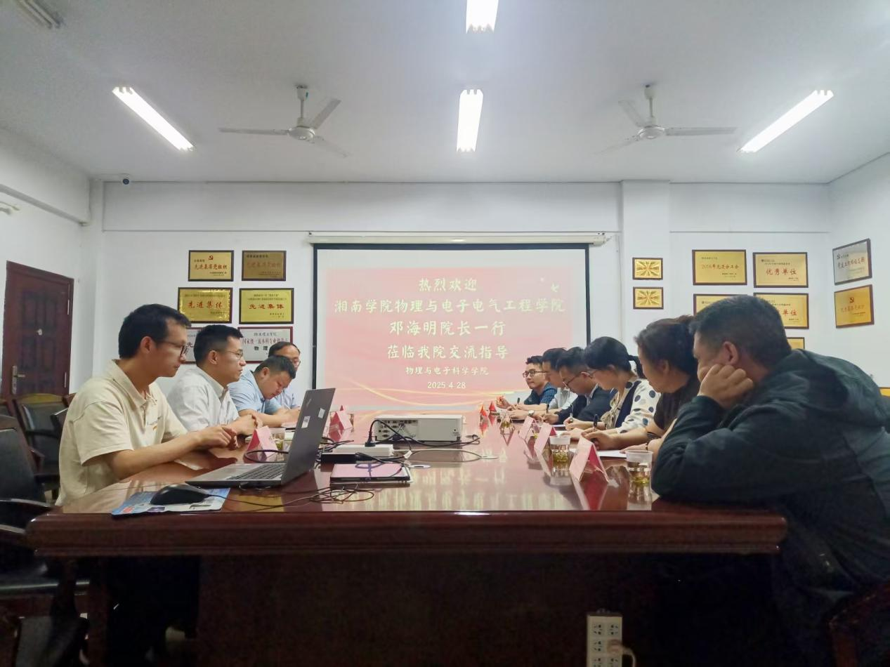 4月28日,湘南学院物理与电子电气工程学院院长邓海明一行6人到我院调研,院长(主持工作)魏勇、副院长罗良、实验室主任钱坤、稂林参与交流。