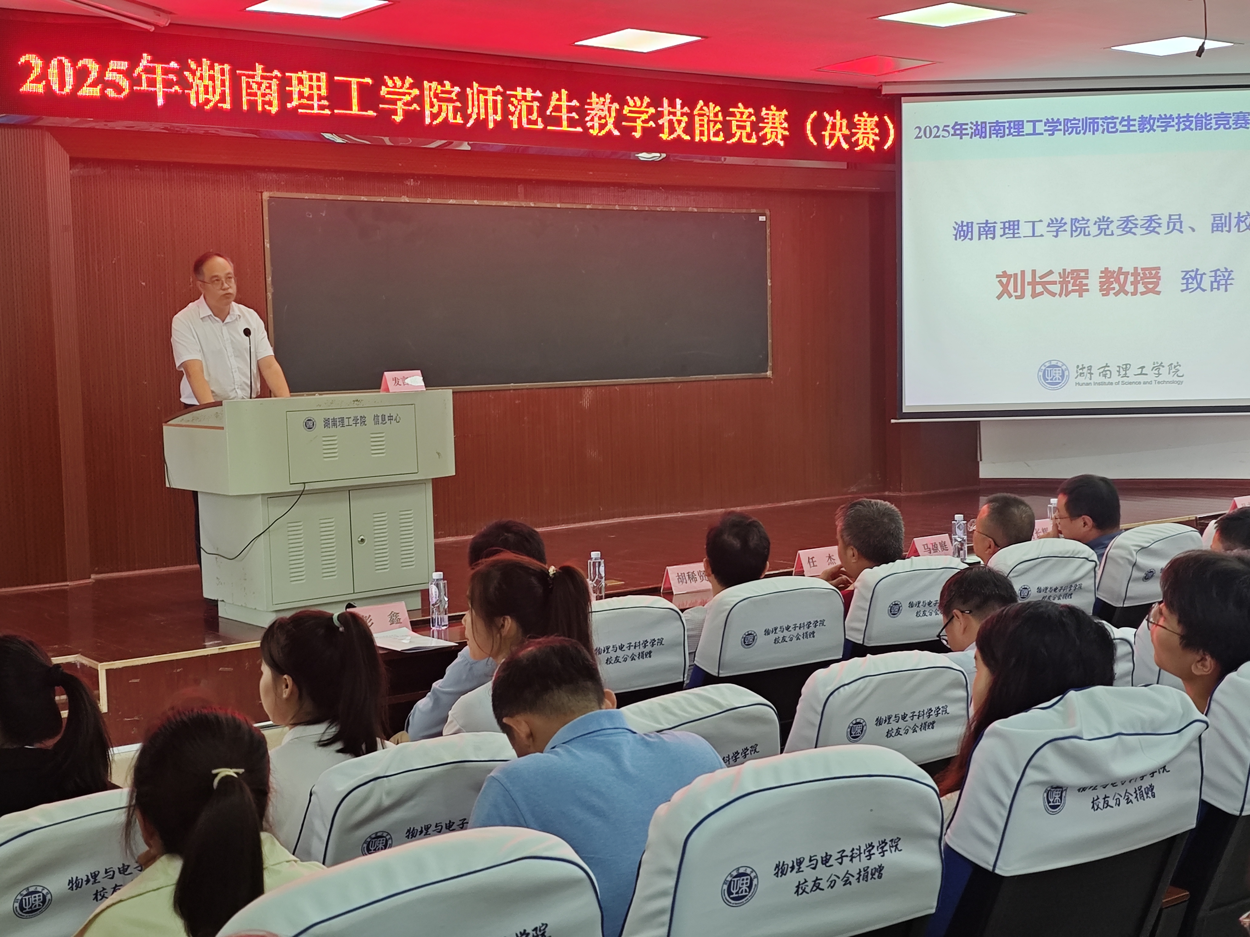 9月30日下午,WilliamHill中文官方网站2025年师范生教学技能竞赛(决赛)在南院6号教学楼举办。该项比赛由教务处主办,物理与电子科学学院承办,副校长刘长辉、教务处处长彭鑫、物电学院院长魏勇及学校相关部门的领导、师生代表近200人参加。