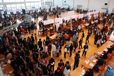 此次供需见面会截止11月19日下午五点共有645家用人单位报名参加,实到586家,其中省外单位269家,省内单位242家,岳阳本地单位75家。外省单位具体分布为:广东省120家,北京市13家,浙江省53家,江苏省55家,上海市14家,湖北省4家,江西省5家,广西2家,海南省2家,山西省1家。从行业来看,金融业56家,机械电子行业130家,生化医疗行业101家,文化教育行业110家,房地产建筑行业36家,IT行业48家,研究机构行业3家,机关3家,广告行业9家,商贸行业15家,餐馆酒店行业33家,其他行业42家。此次供需见面会共提供岗位8741个,共有3564人次达成就业意向。由于我们在用人单位来校前征询其是否需要安排专场宣讲和面试,20号下午许多单位要求进行专场招聘安排,有几家更是延续到第三天。我们此次举办的供需见面会无论在规模还是在质量上,都是以前所没有达到的,收到用人单位代表的好评,本校毕业生更是表示: