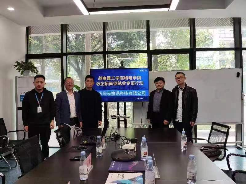 为深化校企合作,充分发挥学院带头促就业的示范引领作用。4月9日,物电学院副院长魏勇、罗良以及钱坤博士一行人前往海云捷讯科技有限公司开展访企拓岗促就业专项行动 ,并与海云捷讯科技有限公司合作建设实践教育基地。
