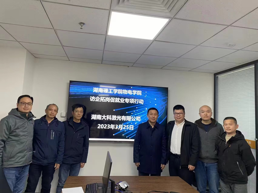 为落实教育部、省教育厅关于2023届毕业生就业工作的决策部署和学院“三抓三促”活动方案,扎实推进“访企拓岗促就业”专项行动。3月25日,物电学院院长李宏民、党委副书记李科敏及副院长魏勇、邹志军一行人前往湖南大科激光有限公司及长沙弘仕教育集团开展访企拓岗促就业专项行动,并与湖南大科激光有限公司合作建设实习基地。