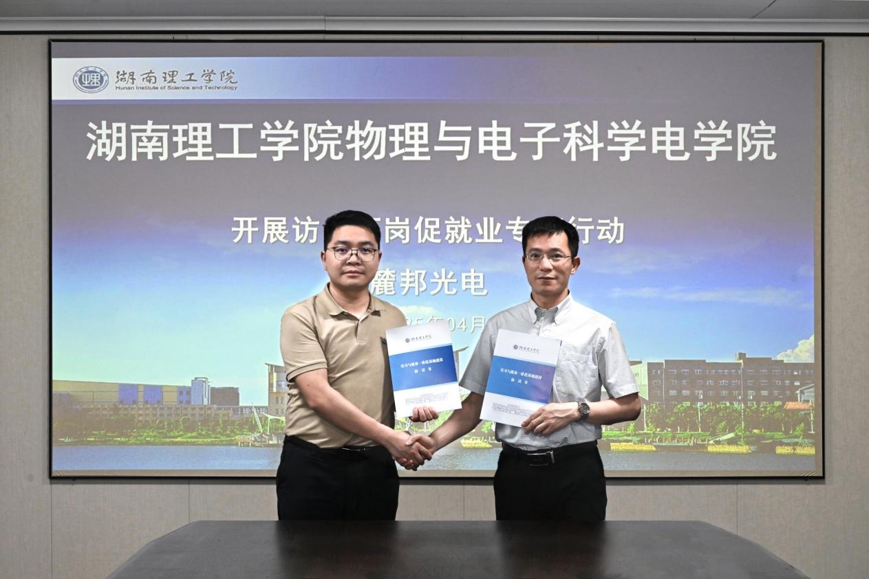 4月20日下午,物电学院党委委员、副书记、院长(主持工作)魏勇、副院长邹志军和就业专干李哲君一行赴麓邦光电有限公司,开展实习与就业一体化基地授牌和“访企拓岗促就业”活动。麓邦光电范颖超、莫忠等相关负责人参加。