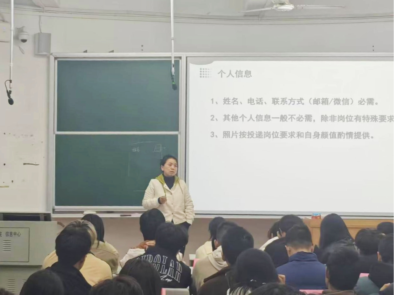11月25日晚,物电学院在6T1教室组织开展“湖鲤金牌计划”求职能力训练营活动,此次活动的主题为“求职面试与简历制作”,何小娅老师到场组织。