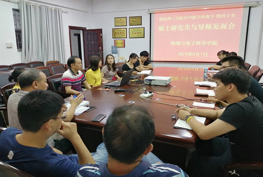 2019年9月7日晚7点,物理与电子科学学院在6205会议室开展2019级学科教学(物理)研究生师生见面交流活动。出席本次交流会的有研究生院相关负责人、物电学院主管领导、研究生导师和2019级学科教学(物理)研究生。