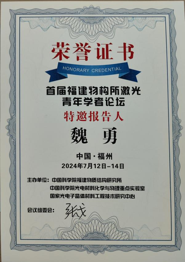 7月12日-7月14日,首届福建物构所激光青年学者论坛于在福建省福州市召开。魏勇教授受邀参加并做了题为《浑浊介质的分光光度法研究》的报告。