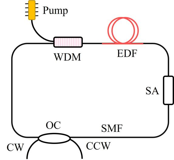 超快光纤激光器中的色散管理被证明是研究孤子非线性动力学并控制光孤子时域特性的有效方法。目前,关于孤子动力学的研究主要集中在主导于群速度色散主导的常规激光器上。然而,传统激光器的性能存在局限性,这种需求推动了用于高性能系统的新型操作模式的探索。在本论文中,双向锁模孤子光纤激光器装置如图2所示。