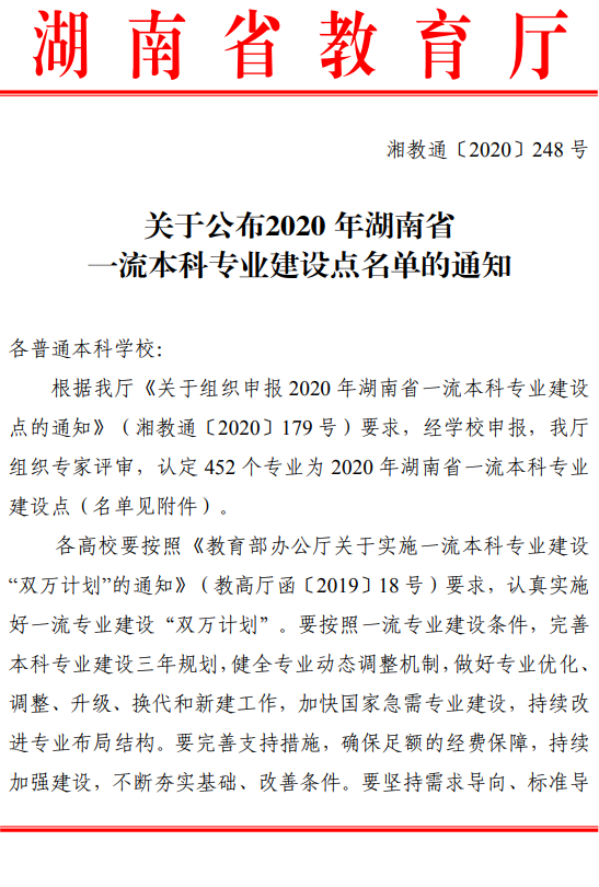 根据湖南省教育厅湘教通〔2020〕248号文件,我院物理学专业荣获2020 年湖南省一流本科专业建设点。