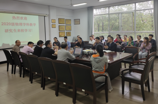下午4点,2020级学科教学(物理)专业研究生师生见面会在物电学院会议室隆重举行,院党政班子成员、校内导师、研究生秘书、辅导员和全体研究生新生出席见面会,见面会由院党委书记罗文华教授主持。