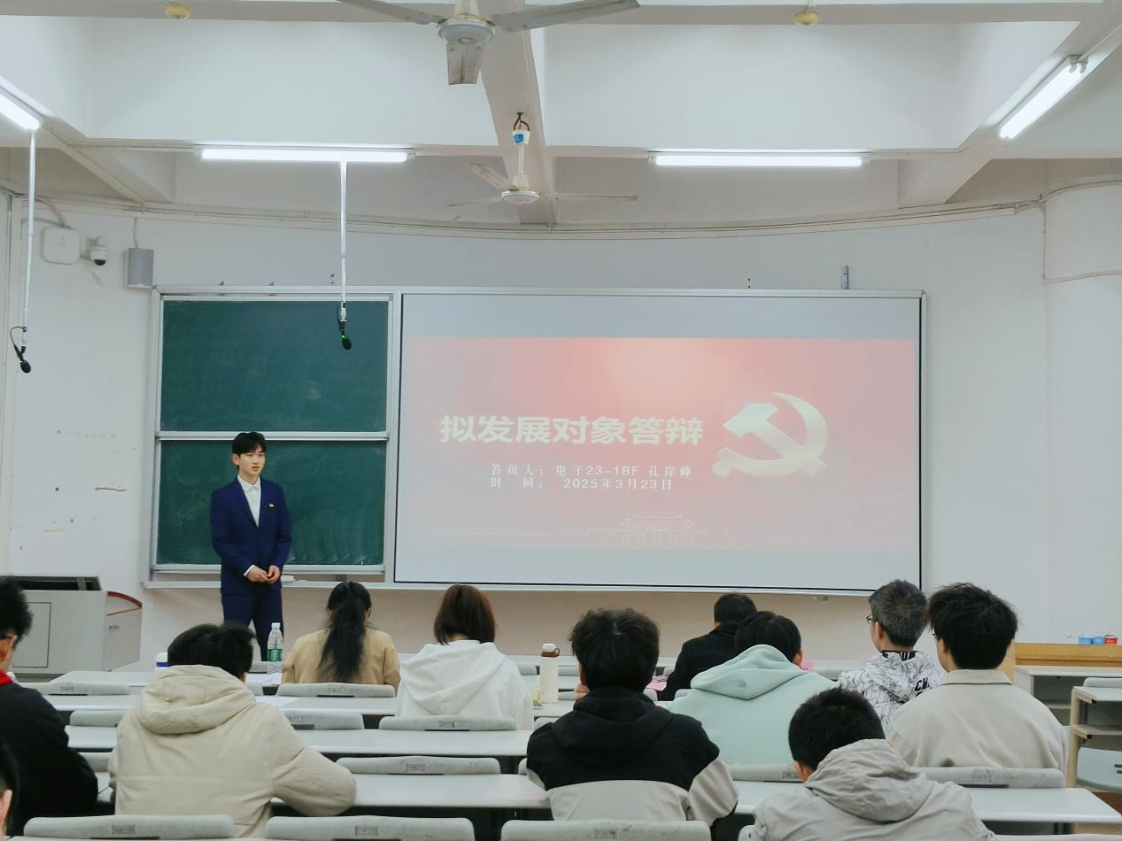 3月23日,物电学院开展了2025年上半年入党积极分子答辩会,院党委副书记石红芳、党委委员李科敏、李昶及组织员何小娅担任评委,学生一支部、二支部和研究生支部全体学生党员及入党积极分子参会。