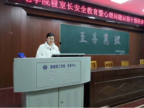 最后,张书记对本次培训做出小结,指出寝室长要有相关意识并能够去知道身边哪些人需要关心,能够第一时间去干预,最快反馈到老师那,让老师明白哪些人群需要关心,哪些时间段可进行全面分析,掌握这方面的知识并祝同学们大学四年愉快度过。