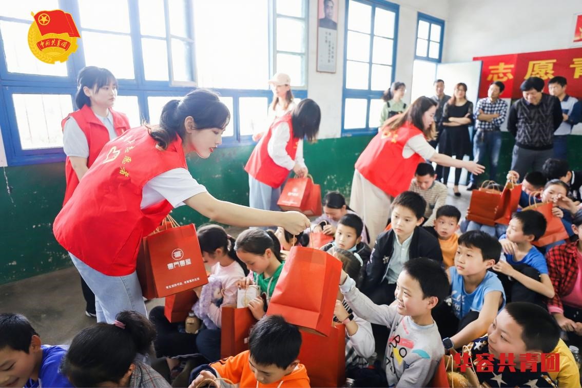 为学生们分发礼品