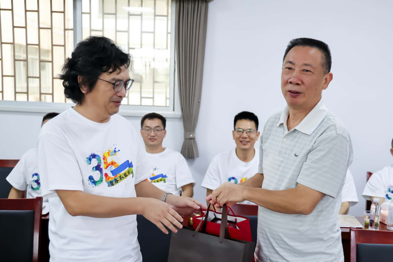 周畅转达学校校友会秘书长陈超文对校友回母校的欢迎,给校友赠送校友杂志《在湖理》,介绍了物电学院校友分会基本情况,希望校友关注母校,常回母校看看。