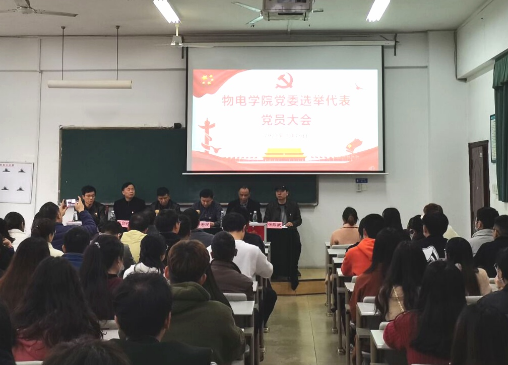 为进一步巩固和加强学院党委基层建设工作,做好充分准备迎接中国共产党WilliamHill中文官方网站第四次代表大会的召开。3月16日下午,物电学院党委选举学校第四次党代会代表党员大会在6102教室顺利召开。大会由院党委书记罗文华主持,学校专职组织员张剑桥、学院全体党委委员出席会议,教师及学生党员参会。