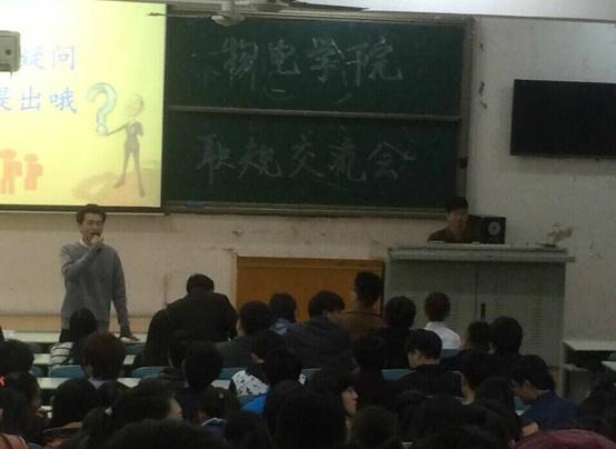 4月10日,物电学院“第七届大学生职业生涯规划大赛开幕式”在9T1教室举行。上届特等奖选手中文学院的梁腊梅同学和政法学院的田庆辉同学为物电学院14级的同学作了参赛经验交流发言。团学分会主席团,各部门部长参加了活动,院团总支书记张恒道出席了会议。