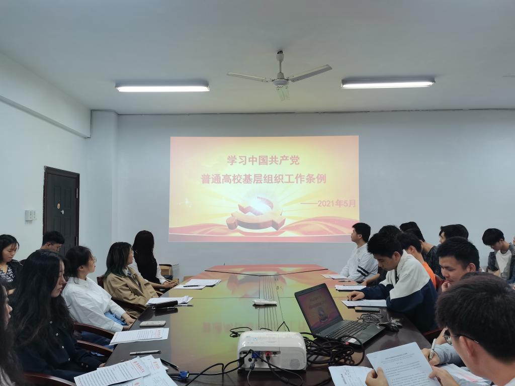 此外,在严胡伟的带领下,与会党员学习了《中国共产党普通高等学校基层组织工作条例》。他呼吁全体党员增强“四个意识”,坚定“四个自信”做到“两个维护”,以昂扬的精神风貌迎接建党一百周年的到来。