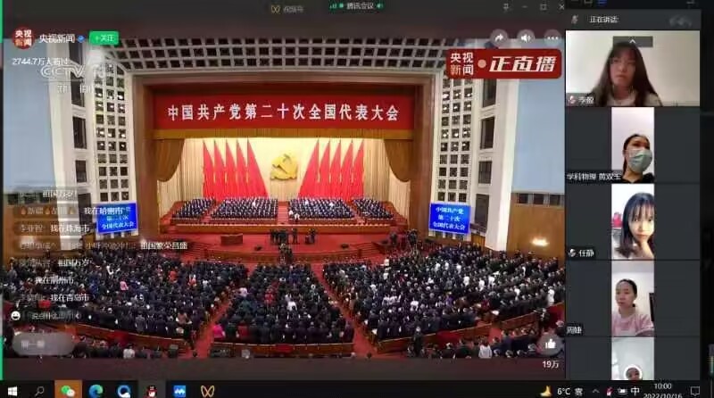 物电学子密切关注党的二十大召开,他们或在教室,或在宿舍集中收看,或组织腾讯会议线上收看开幕会。他们手持党旗,热烈祝贺党的二十大召开。同学们认真聆听习近平总书记的报告,深感作为新时代青年,生正逢时,使命重大,要努力学习,报效祖国!