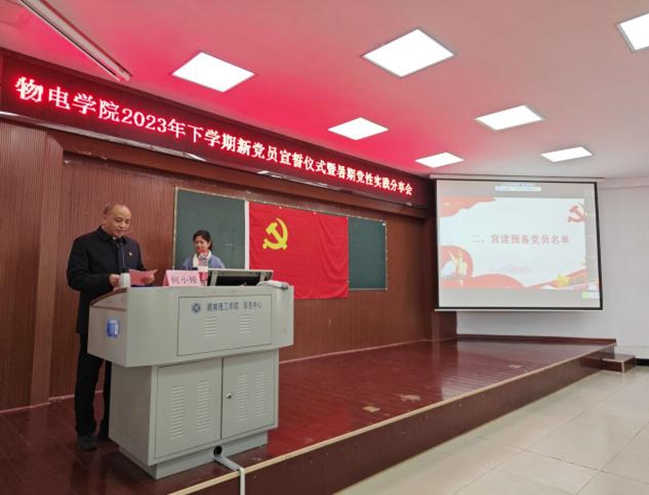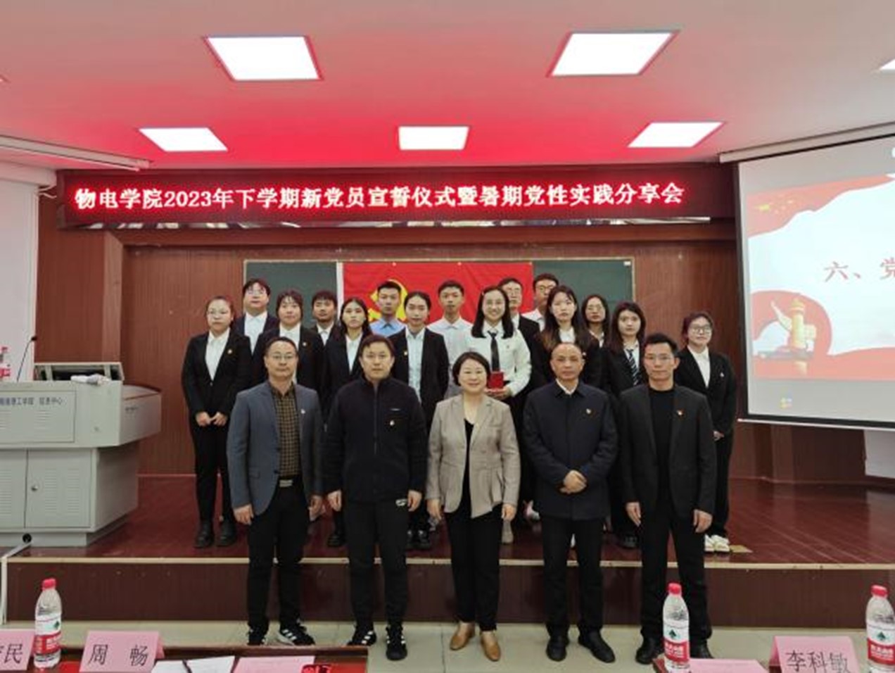 11月28日下午,物电学院2023年下学期新党员宣誓仪式在6号楼学术报告厅隆重举行。学院院党委成员周畅、李宏民、李科敏、魏勇、邹志军出席,全体学生党员和入党积极分子参加,学生党支部书记何小娅主持。