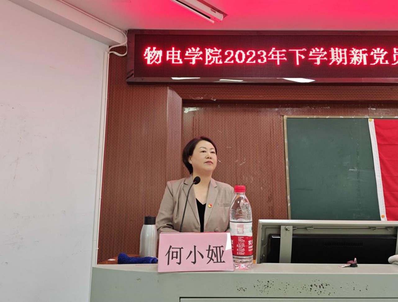 2023年11月28日下午,物电学院党委在6号楼学术报告厅召开2023暑期党性实践分享会。院党委书记周畅、党委副书记李科敏出席,学生党员和入党积极分子100多人参加,学生党支部书记何小娅主持。
