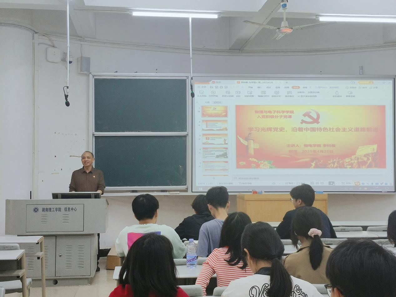 4月25日,物电学院党委委员李科敏教授为第52期入党积极分子讲授“学习光辉党史,沿着中国特色社会主义道路前进”为主题的党课。