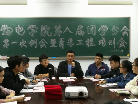 10月24日晚七点,物电学院团总支在6205会议室召开第八届团学分会第一次全体干部干事例会暨青马工程培训会。物电学院团总支书记张恒道、第八届团学分会全体委员和干事参加了此次会议。