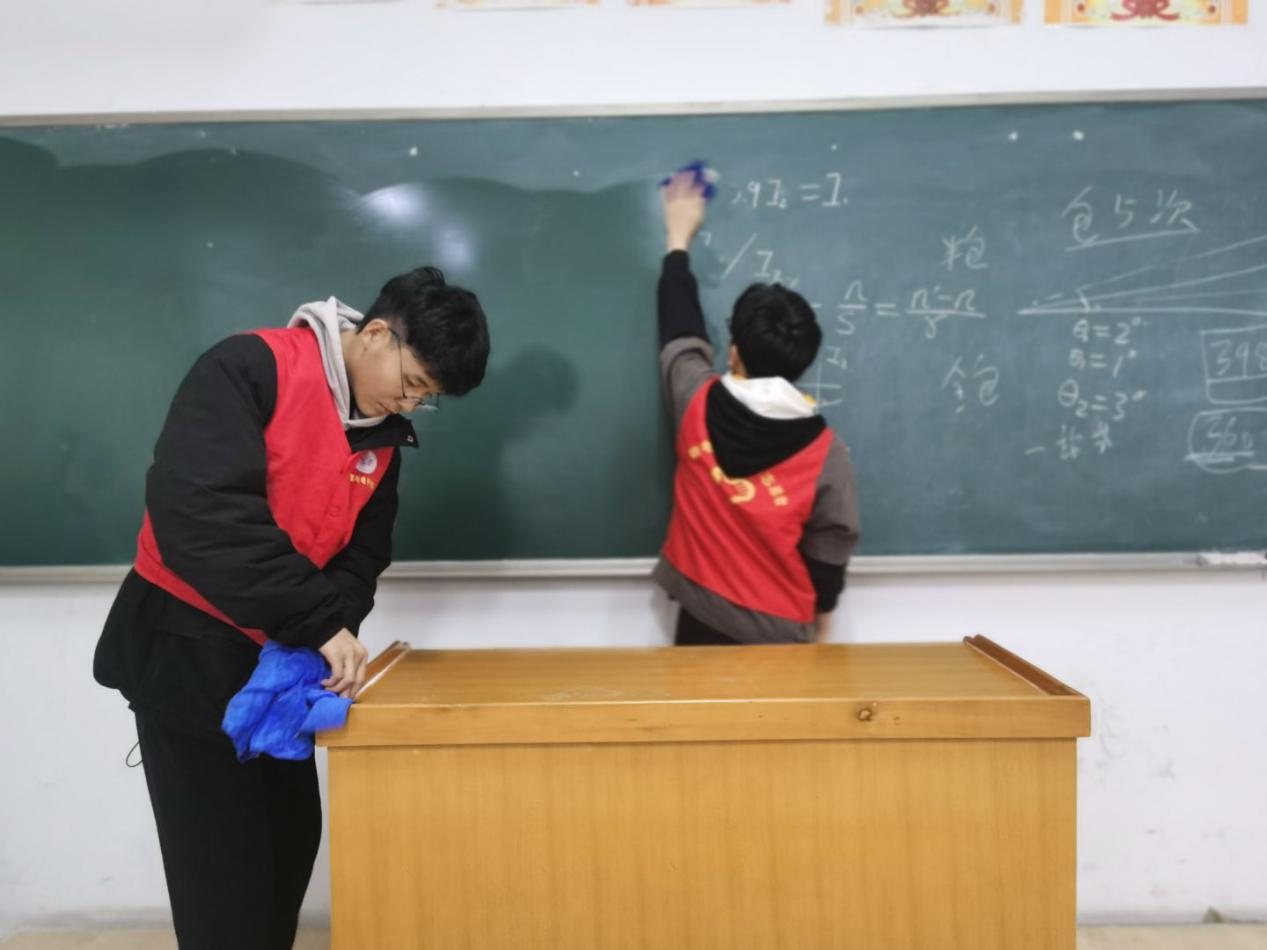 大扫除开始后,大家发扬不怕脏、不怕累的精神,分工明确、协同合作,对地面、讲台、黑板等各类地方都进行了细致的清洁,保证不留任何死角。