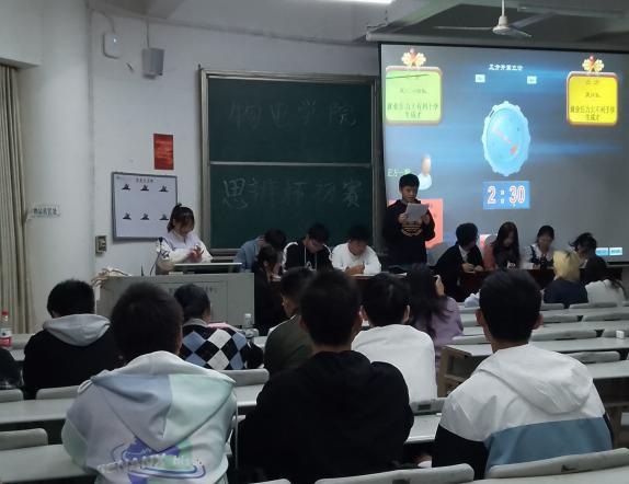 11月2日,我院为了激励同学们奋力追寻梦想,理智面对人生道路上的坎坷,物电学院在6t1和6t2教室开展“思辨杯”初赛,主持人分别是吴斯涛与唐佳宁,韩刚、杨冉、贺文洁、伍文洁等人分组担任评委,每组比赛正辩和反辩各四人,以及数余名学生前来观赛。