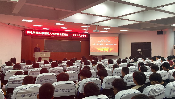 10月7日晚,物电学院在南院6号教学楼学术报告厅举行题为“做新时代好青年”报告会。学院邀请湖南大学干部培训中心吴振华老师主讲,辅导员熊彦淇及全体2023级新生参加,院党委副书记李科敏主持。