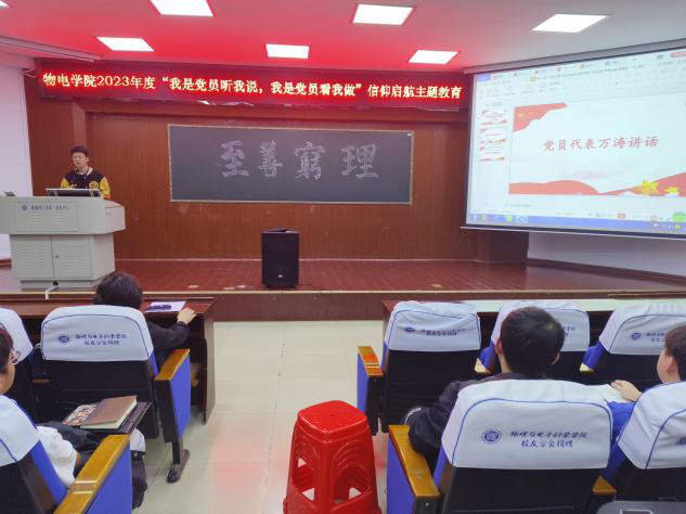 10月13日晚,物电学院开展2023年度“我是党员听我说,我是党员看我做”信仰启航主题教育活动,学生党员代表万涛、周艳发言。