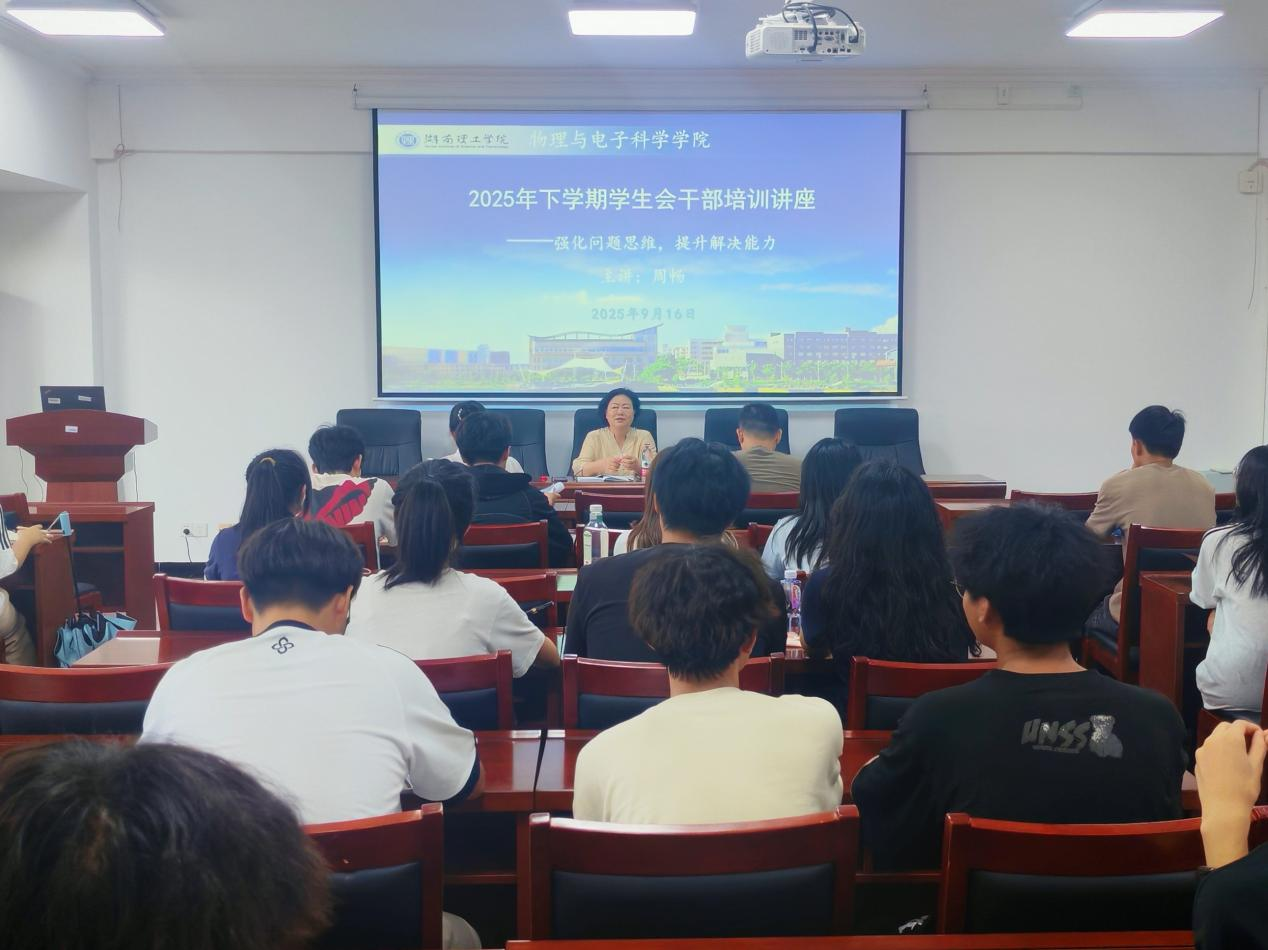 9月16日,物电学院召开学生会干部培训会。培训由院党委书记周畅主讲,院党委副书记石红芳、院团委书记姚世鹏、全体团学干部参会。
