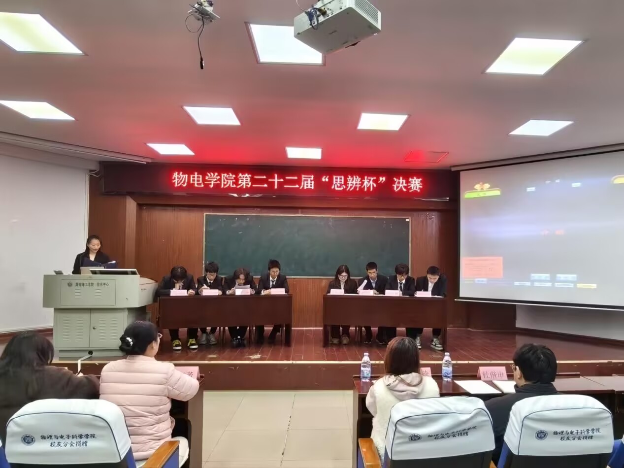 2月16日,物电学院在六栋报告厅举办第二十二届“思辨杯”决赛,由党委副书记石红芳、2025级辅导员刘莹、土建学院24级辩论队队长周珍珍、物电22级辩论队队长杜偕申担任评委,李吉红主持。