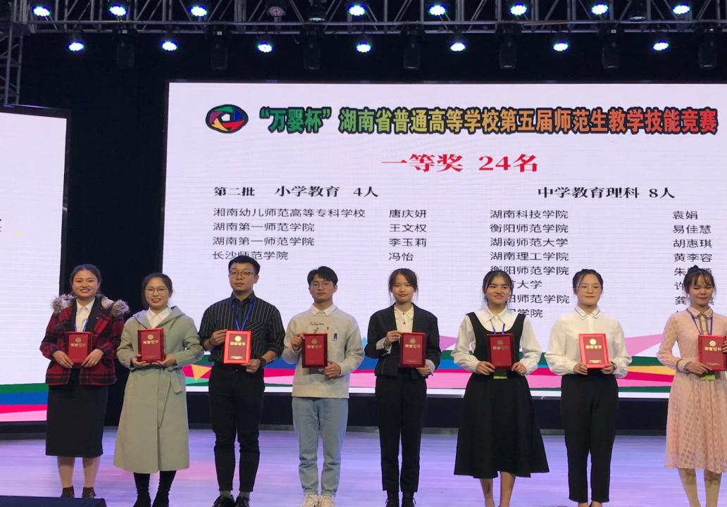 2019年,黄李容同学荣获湖南省师范生教学技能竞赛一等奖