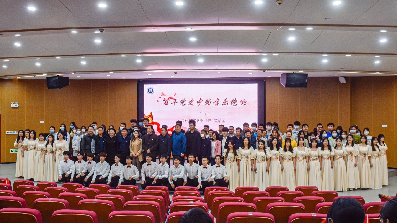 为深入开展党史学习教育,3月29日晚,音乐学院党委与物电学院党委在实验实训楼17118联合举办了一堂别具匠心的音乐党课。WilliamHill中文官方网站党委委员、组织部长刘创,外语学院党委书记王敏,学校组织部综合办主任夏玉宁、基层党建办主任童沁出席。物电学院党委书记周畅主持,音乐学院党委书记黄皓华主讲,物电学院党委副书记、院长李宏民及全体党委成员、党员师生、入党积极分子共同聆听。