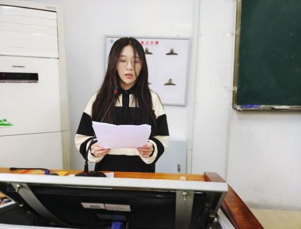 之后,彭紫涵作为入党积极分子代表发言说作为一名优秀的入党积极分子,首先应当认真学习党的指导思想,将其视为自己的行动指南;其次要保持蓬勃向上、意气风发的精神面貌,以先进模范为榜样,用心学习、用心工作;最后,入党积极分子要时刻关注党的动向,关注时事热点,紧紧团结在党的周围。同时,她也代表全体入党积极分子表态:将严格遵守学习纪律,认真参加学习、讨论和实践活动,认真学习党史、党章和党的理论知识圆满完成学习任务。