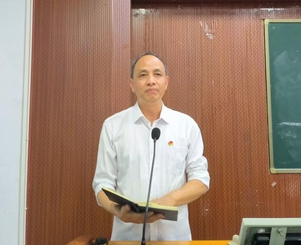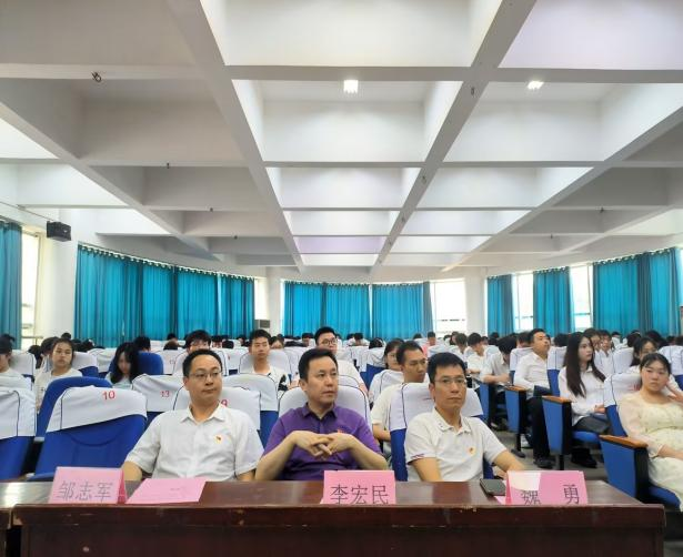 5月30日下午,物电学院党委在六栋学术报告厅举行“党章进行囊,信仰伴远行”主题教育。院党委书记周畅、院长李宏民、党委副书记李科敏、副院长魏勇、罗良、邹志军,本科生党支部书记何小娅出席,研究生党支部书记尹艺媛主持。